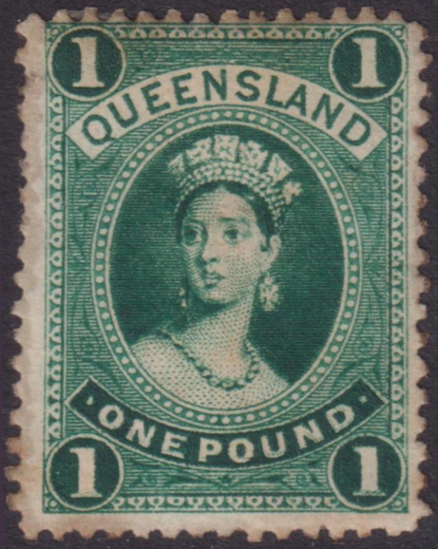 2002 M imageQueensland 1886 £1 QV full face deep green, full gum but areas of browning, w/c. SG 161. Cat £325. Mint. (Image)