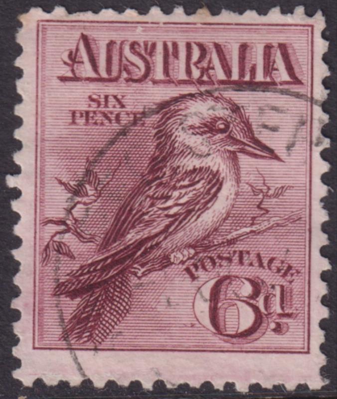 1914 6d Kookaburra claret. O/c to top. SG 19. Cat £60. FU. (Image)