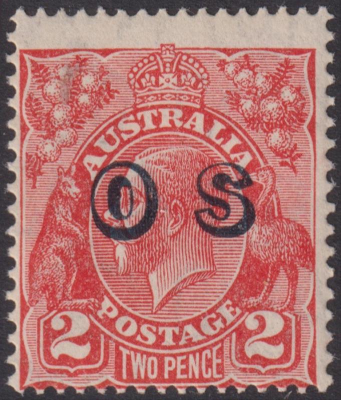 1932 2d GV golden scarlet, with "O S" (official) ovpt, o/c. SG O125. Cat £27 as mint. MUH. (Image)