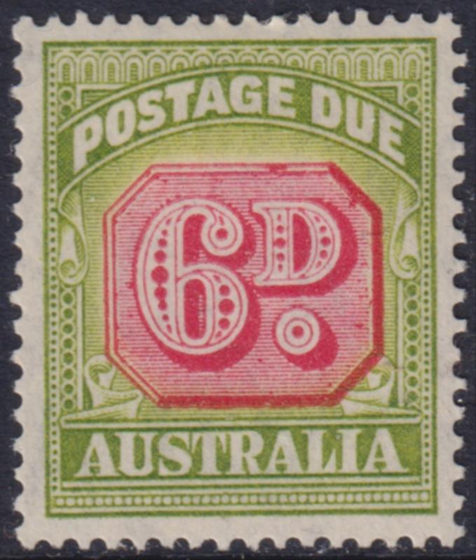 1947 6d Postage Due, p14½ x 14, C of A wmk. SG D125. Cat £28. Mint. (Image)