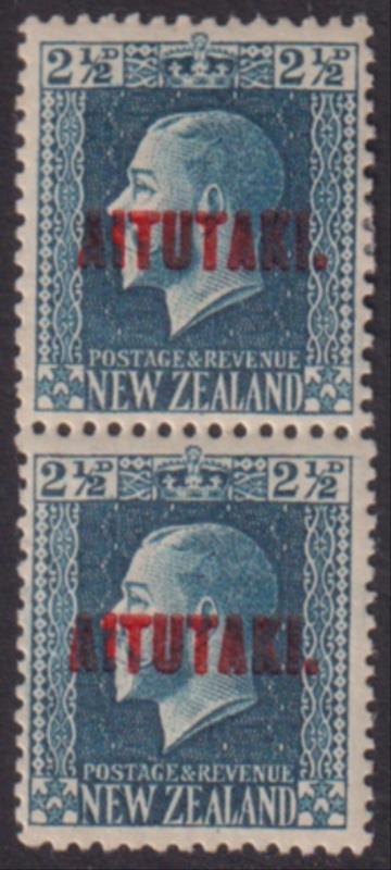 Aitutaki 1917 2½d GV 2 perf pair. SG 15b. Cat £30. Mint. (Image)