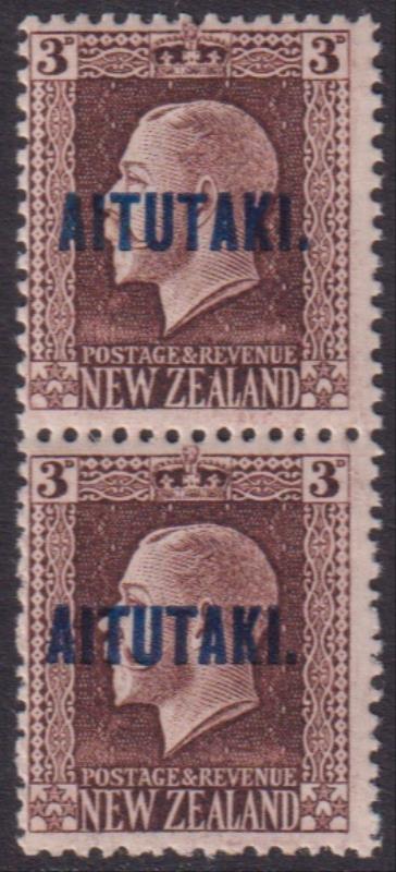 Aitutaki 1918 3d GV 2 perf pair. SG 16b. Cat £30. Mint. (Image)