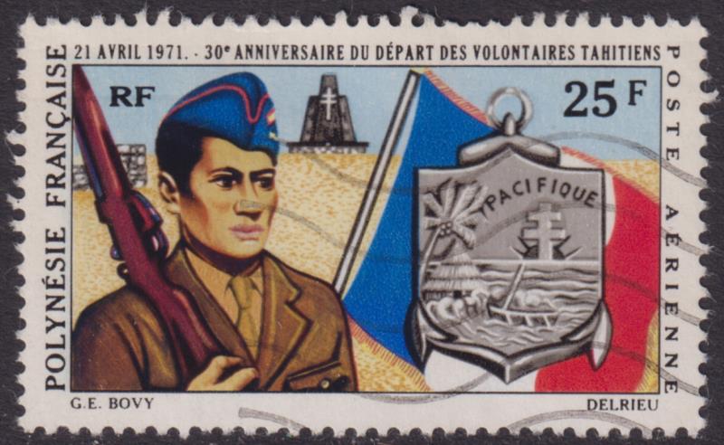 2308 U imageFrench Polynesia 1971 25F 30th Anniversary of Departure of Tahitian Free French Volunteers. SG 129. Cat £20. FU. (Image)