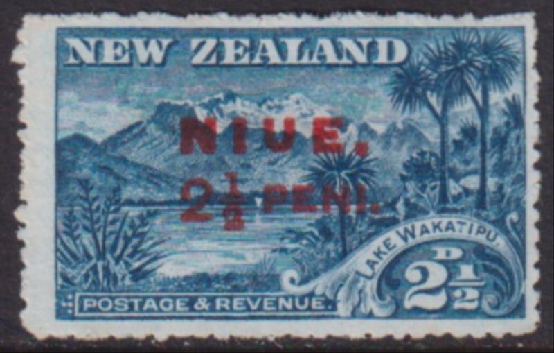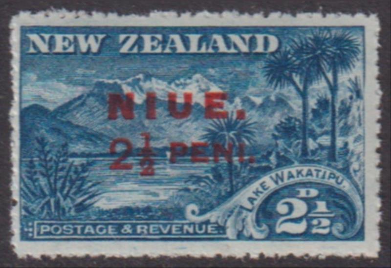 Niue 1915 2½d Wakatipu deep blue, p14 with carmine ovpt. Roughly punched perfs. SG 20. Cat £28. Mint. (Image)