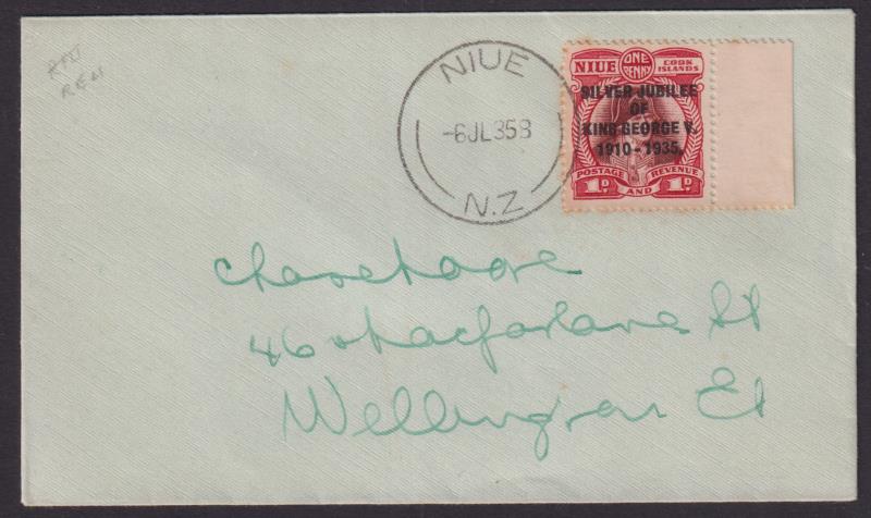 2404 C imageNiue 1935 1d Jubilee on 1935 cover to Wellington, faint perf tone. FU. (Image)
