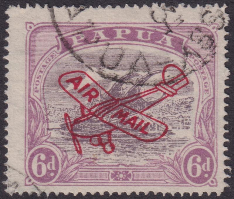 Papua 1930 6d Airmail. SG 119. Cat £28. FU. (Image)