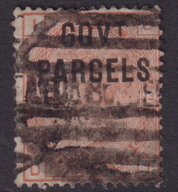 1883 1/- orange-brown (DI), GOVT. / PARCELS, heavy cancel. SG O64c. Cat £550. GU. (Image)