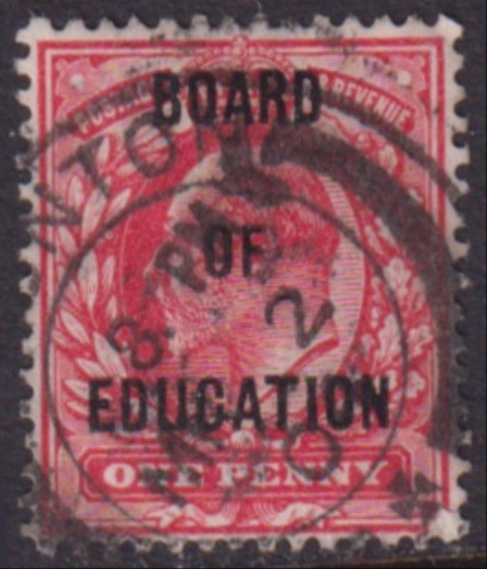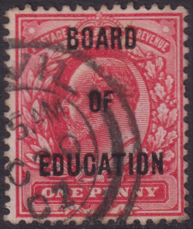 1902 1d EVII scarlet, BOARD / OF / EDUCATION. SG O84. Cat £25. FU. (Image)