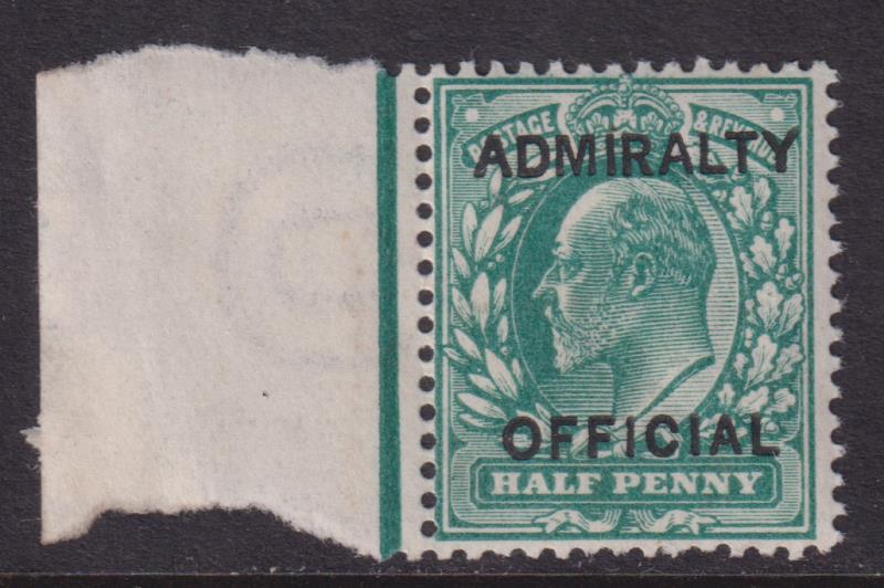 1903 ½d EVII blue-green, left selvedge ("O" wmk), ADMIRALTY / OFFICIAL. SG O101. Cat £35+. MUH. (Image)
