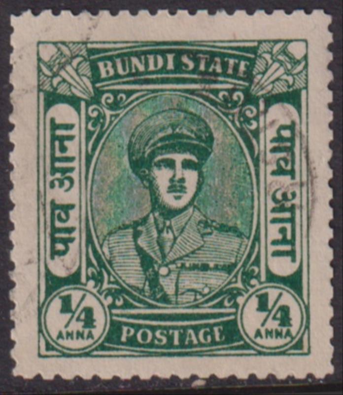 2958 U imageIndia-Bundi 1947 ¼a blue-green. SG 86. Cat £48. FU. (Image)
