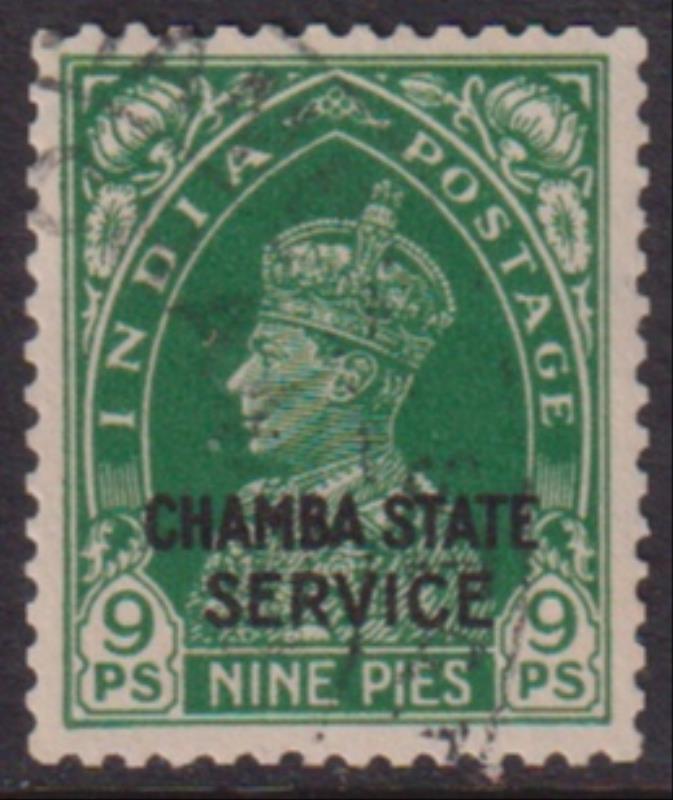 2959 U imageIndia-Chamba 9p GVI green, official. SG O66. Cat £90. FU. (Image)