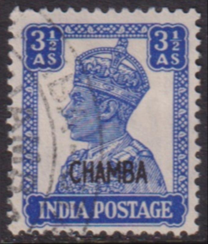 2960 U imageIndia-Chamba 1940 3½a GVI bright blue. SG 115. Cat £55. FU. (Image)