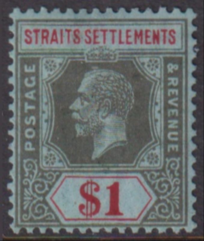 3022 M imageMalaya-Straits Settlements 1910 $1 EVII black & red-blue, multiple crown CA wmk. SG 165. Cat £20. Mint. (Image)