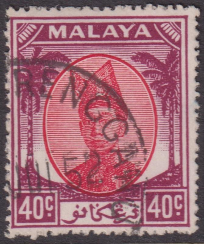 3025 U imageMalaya-Trengganu 1949 40c Sultan. SG 83. Cat £35. FU. (Image)