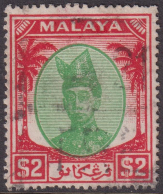 3027 U imageMalaya-Trengganu 1949 $2 Sultan. SG 86. Cat £55. FU. (Image)