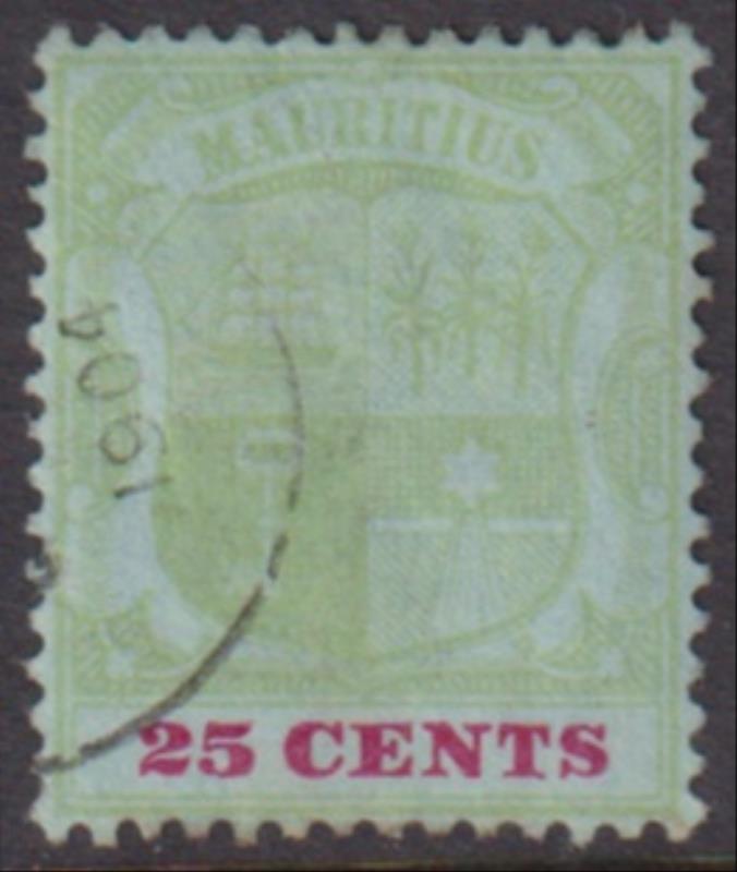 3038 U imageMauritius 1902 25c green & carmine-green, ordinary paper, crown CA wmk. SG 151. Cat £55. FU. (Image)