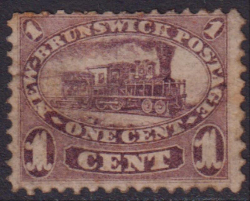 3053 M imageNew Brunswick 1860 1c Train purple. SG 8. Cat £70. Mint, aged gum. (Image)