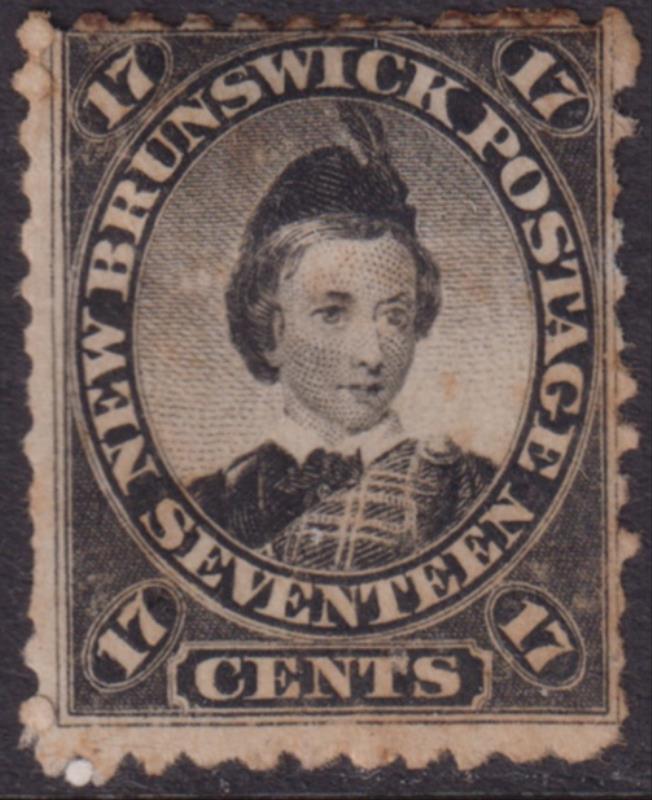 3054 M imageNew Brunswick 1860 17c Prince of Wales. SG 19. Cat £42. Mint, aged gum. (Image)