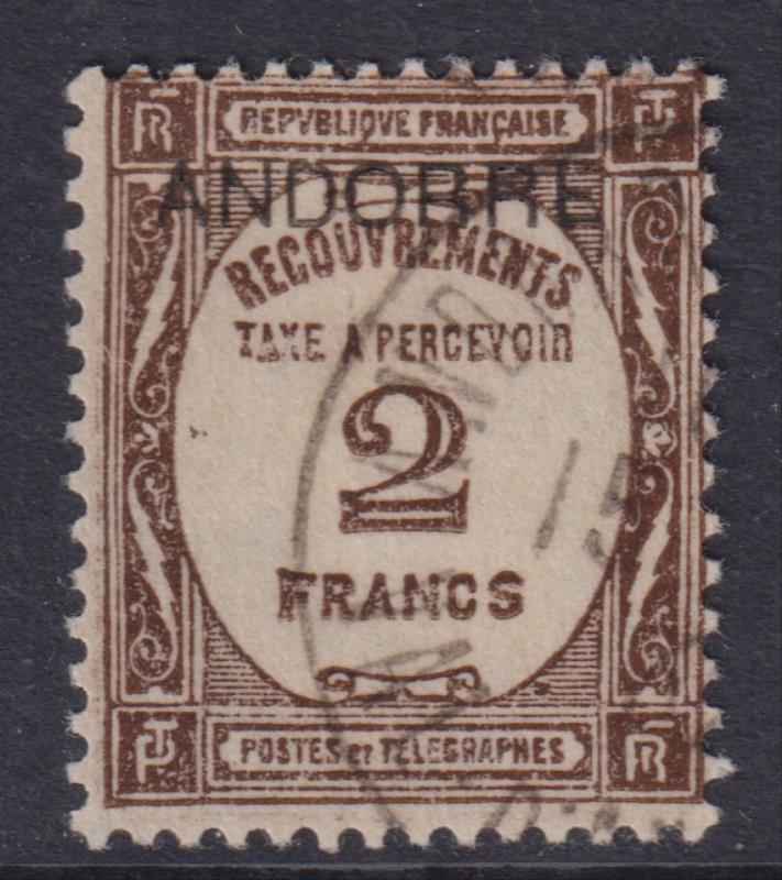3167 U imageAndorra 1932 2F "Andorre" ovpt Postage Due, bistre-brown. SG FD37. Cat £325. FU. (Image)