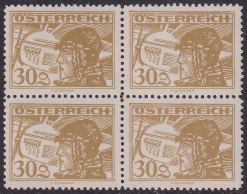 3171 * imageAustria 1925 30g Pilot & Aeroplane bistre block of 4. SG 627. Cat £60. MUH. (Image)