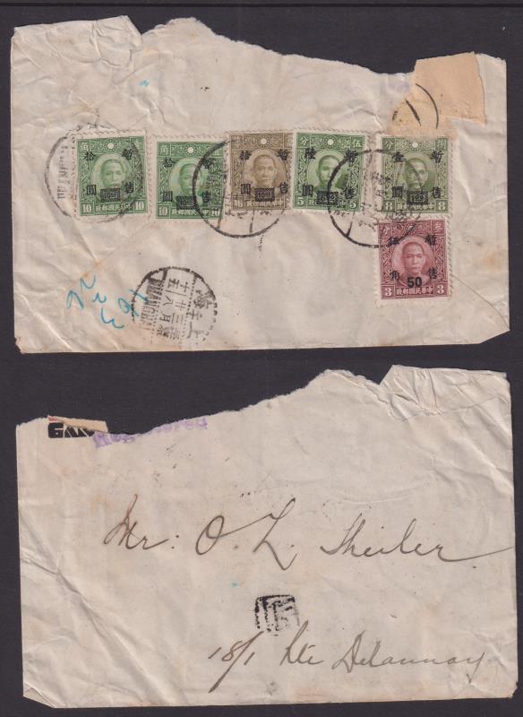 China-Japanese Occupation of Nanking & Shanghai c1942 (March?) commercial reg'd local Shanghai cover bearing 50c on 3c, $1 on
