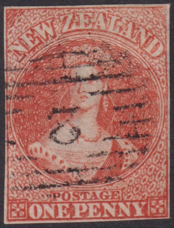 FFQ Chalon 1d carmine-vermilion, p12½, star wmk, neat barred cancel touches face. SG 110. Cat £50. FU. (Image)