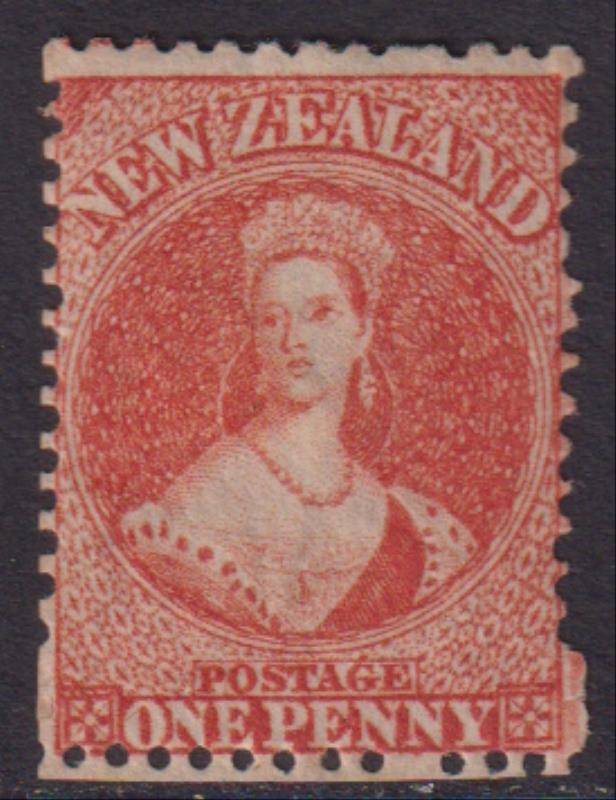 FFQ Chalon 1d carmine-vermilion, p12½, star wmk, part gum, blind perfs & foot on sides. SG 110. Cat £350. Mint. (Image)