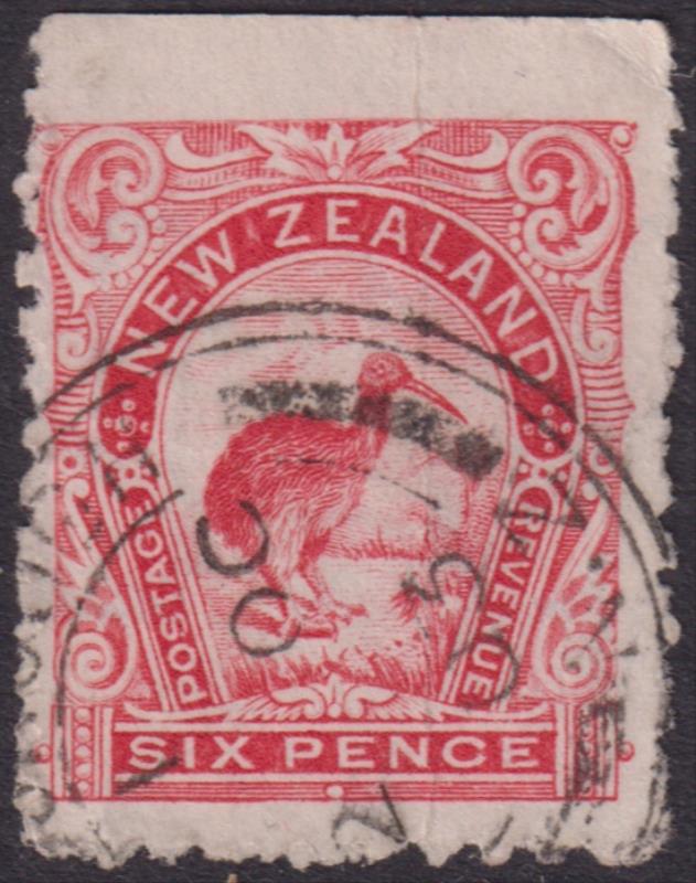 1902 6d Kiwi red, p11, imperf at top, letter wmk (NZ & Star wmk paper). CP E14ey. Cat $75. FU. (Image)
