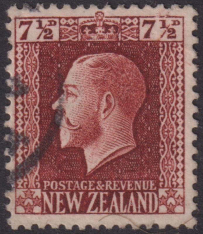 1915 7½d GV deep red-brown, p14 x 13¼, G-type steel cds, ring rather heavy. CP K9a. Cat $80. GU. (Image)