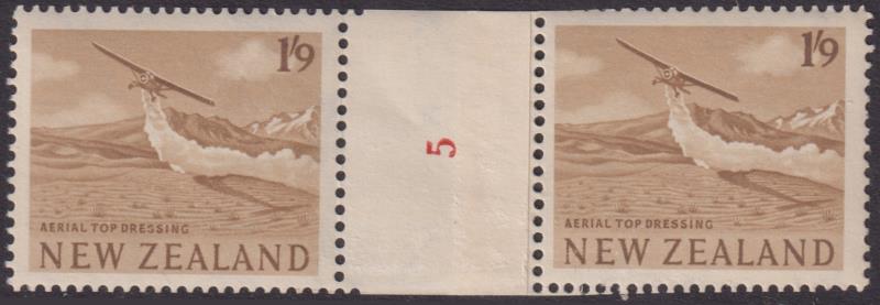 1960 1/9d Topdressing bistre coil pair, No 5 reading upwards. CP OC15b. Cat $60. MUH. (Image)