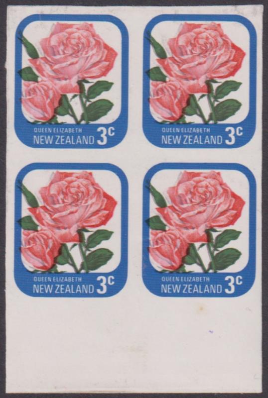 1975 3c Rose lower selvedge imperf block of 4. CP PA3a(z). Cat $1200. MUH. (Image)