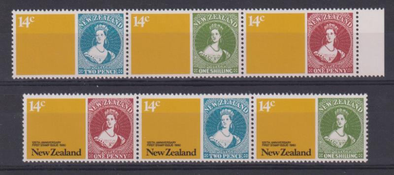 1980 14c Zeapex horiz strip of 3, missing black error ("NEW ZEALAND" etc omitted) with normal. CP SP260-262z. Cat $1000.