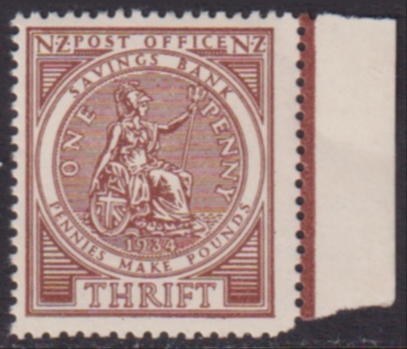 1852 * image1934 1d Thrift brown, POSB. Kiwi R55h. Cat $60. MUH. (Image)