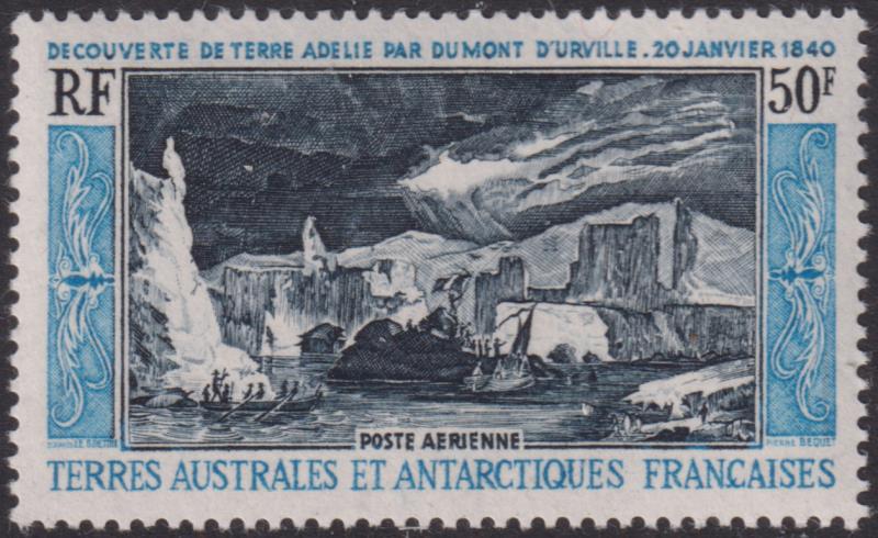 1922 M imageFSAT 1965 50F Air Discovery of Adelie Land 1840, indigo & light blue. SG 38. Cat £140. VLH mint. (Image)