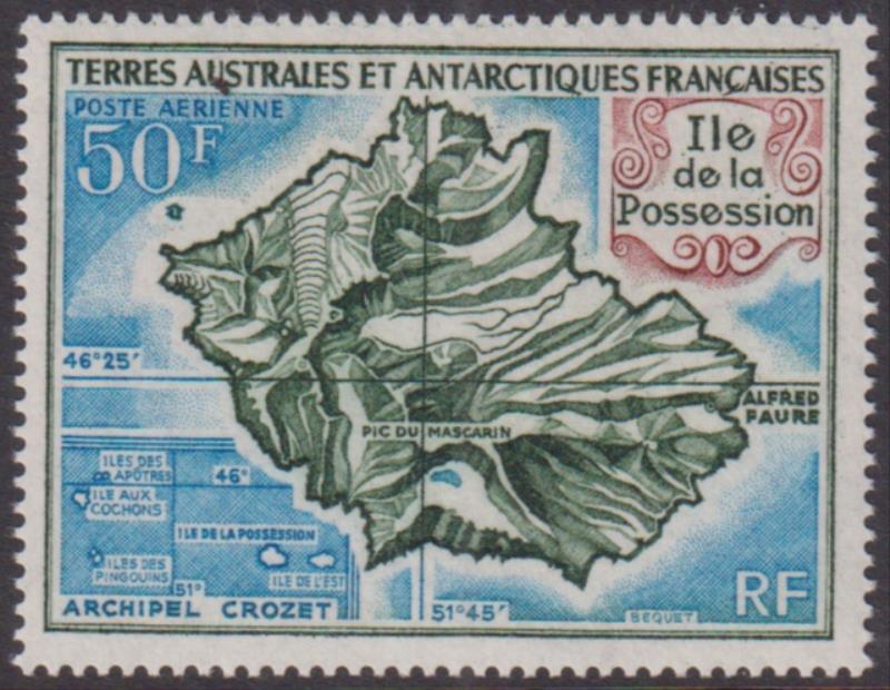 1923 * imageFSAT 1970 50F Air Possession Island, slate green claret & blue. SG 54. Cat £23. MUH. (Image)