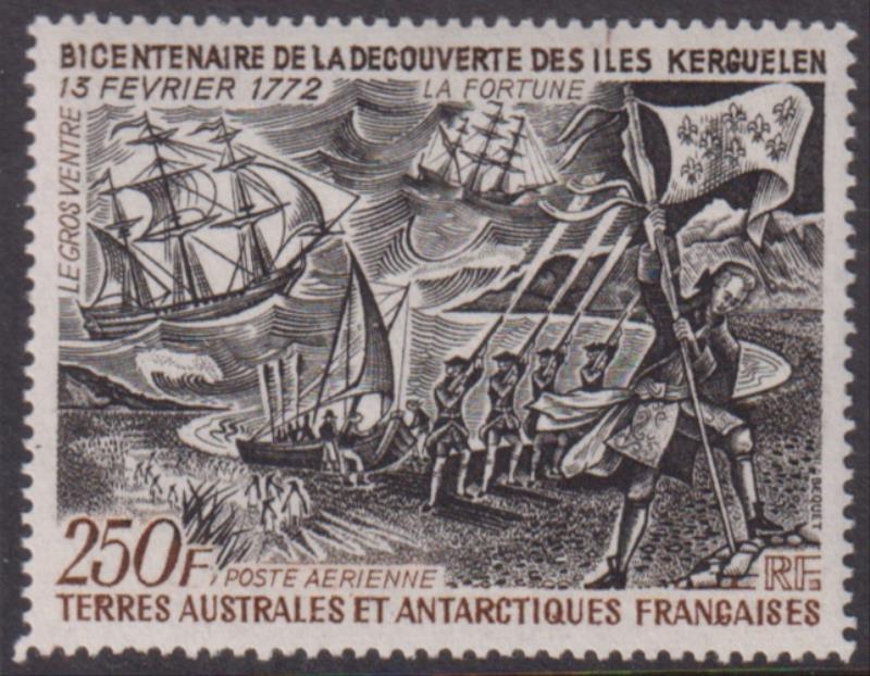 1925 * imageFSAT 1972 250F Landing on Crozet Island black & brown. SG 79. Cat £130. MUH. (Image)