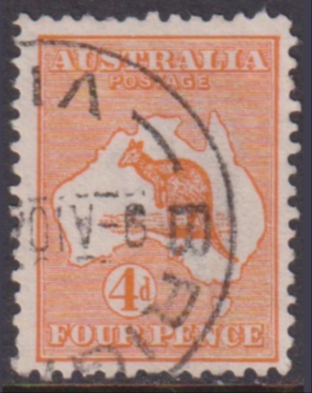 1913 4d Roo orange, p12, dated (1913) cds. SG 6. Cat £27. FU.