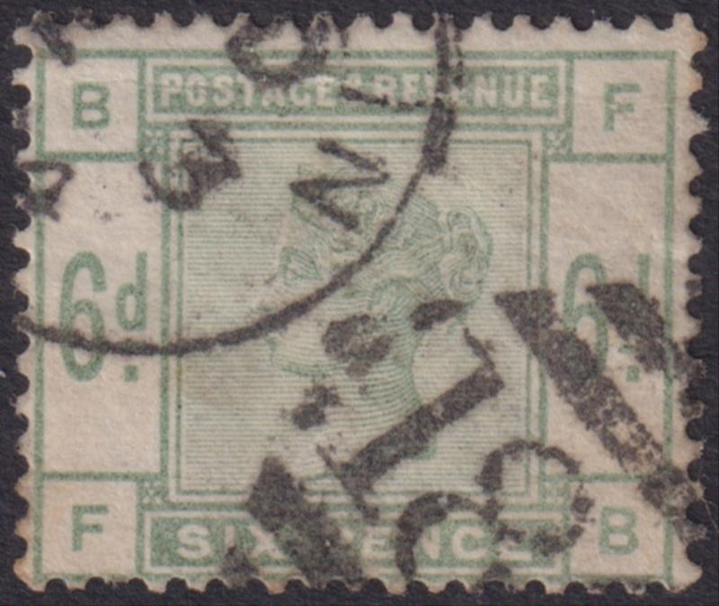 1884 6d green (EF), reasonable colour. SG 194. Cat £100. FU. (Image)