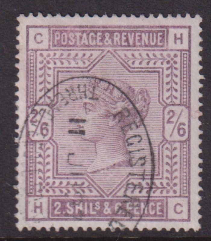 1884 2/6d lilac (CH/HC), white paper, canc oval "Registered / Threadneedle St. B.O." steel cds. Exceptional quality. SG 178.