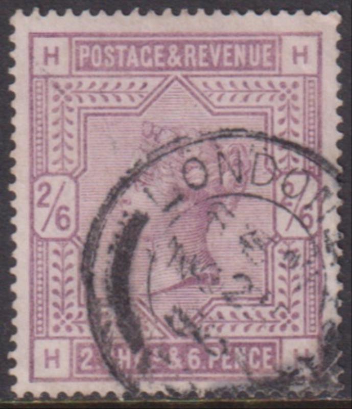 1884 2/6d lilac (HH/HH), white paper, rather heavy London steel cds, sound. SG 178. Cat £100. GU. (Image)