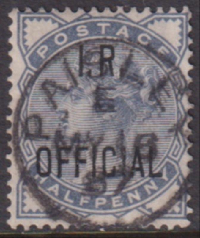 1885 ½d I.R. Official slate-blue, cds. SG O5. Cat £20. VFU. (Image)