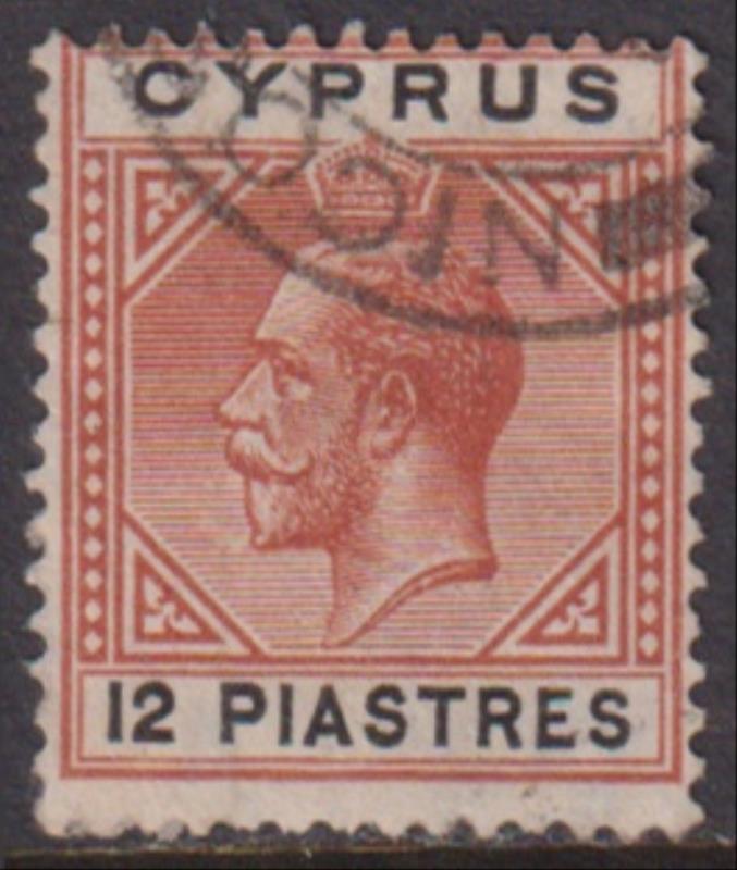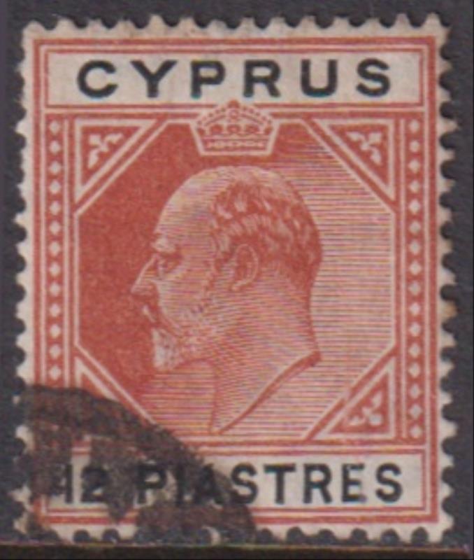 Cyprus 1906 12pi EVII chestnut & black, p14, crown CA wmk, corner cds. SG 69. Cat £65. GU. (Image)