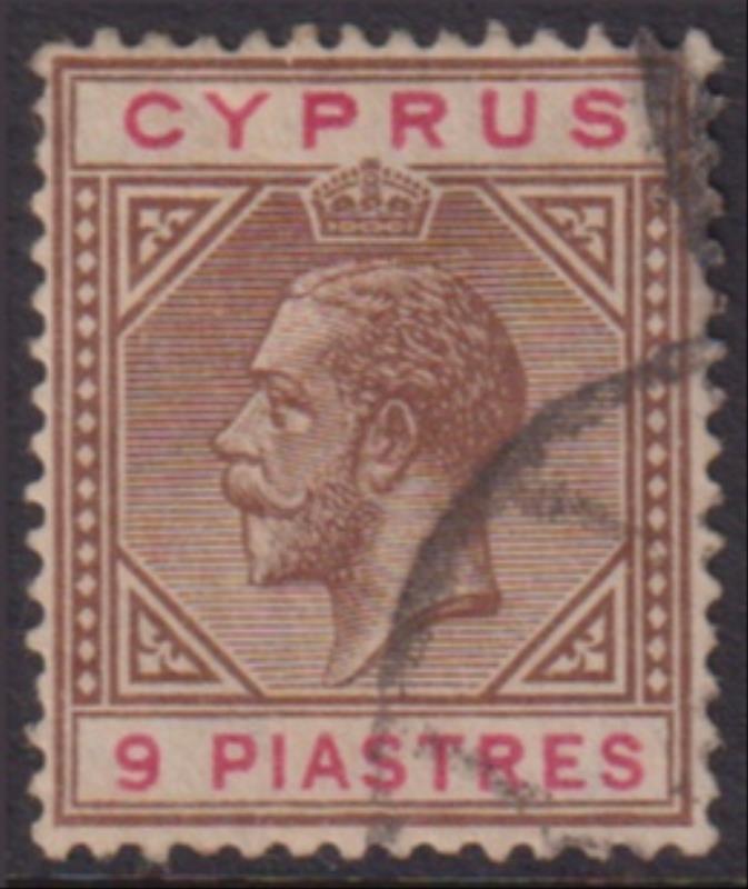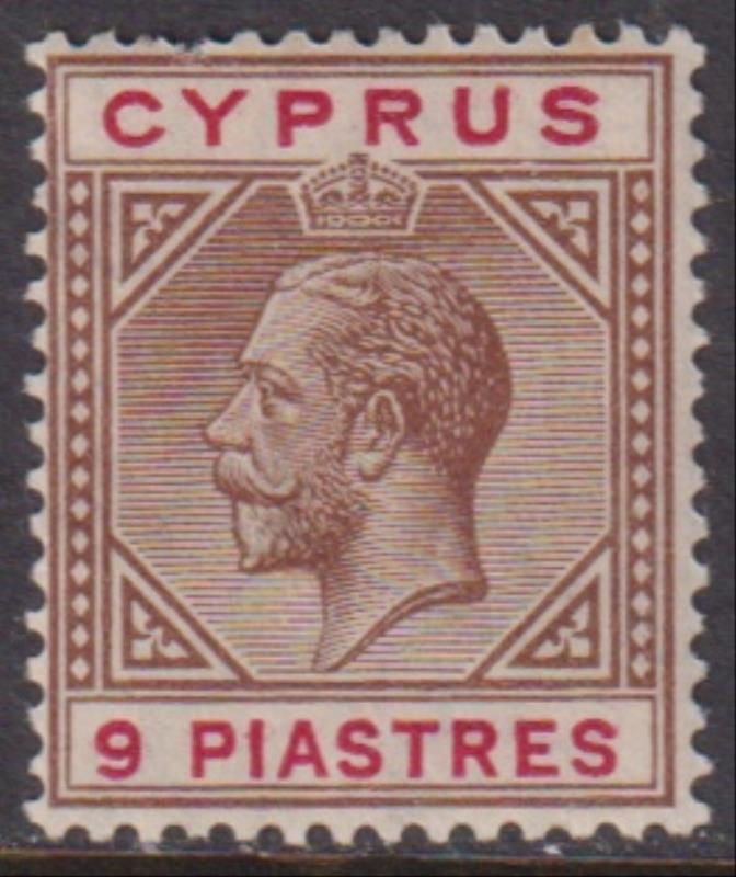 Cyprus 1915 9pi GV brown & carmine, p14, mult crown CA wmk. SG 81. Cat £42. Mint. (Image)