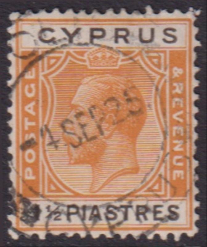 Cyprus 1924 1½pi GV orange & black. SG 107. Cat £18. FU. (Image)