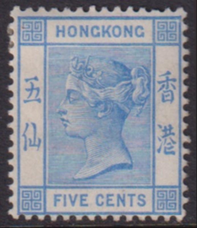 Hong Kong 1882 5c QV pale blue, wmk crown CA. SG 35. Cat £55. Mint. (Image)