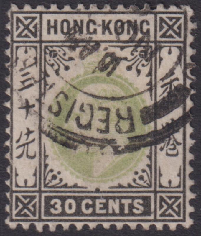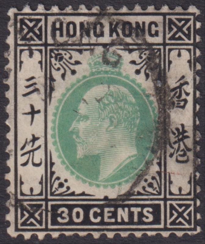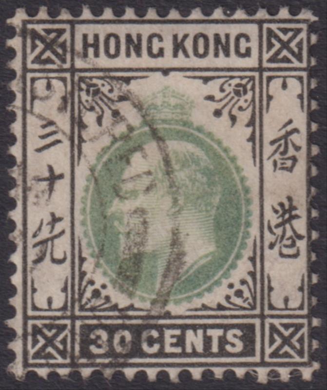 Hong Kong 1904 30c EVII, ordinary paper, multiple crown CA wmk. SG 84. Cat £40. FU. (Image)