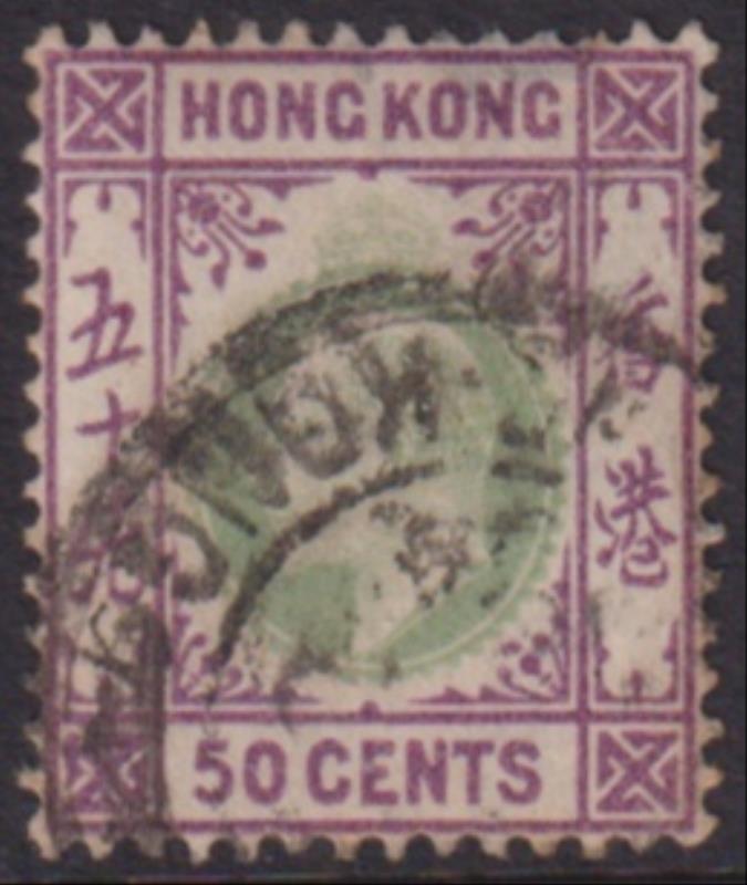 Hong Kong 1903 50c EVII dull green & magenta, crown CA wmk. SG 71. Cat £70. GU/FU cds. (Image)