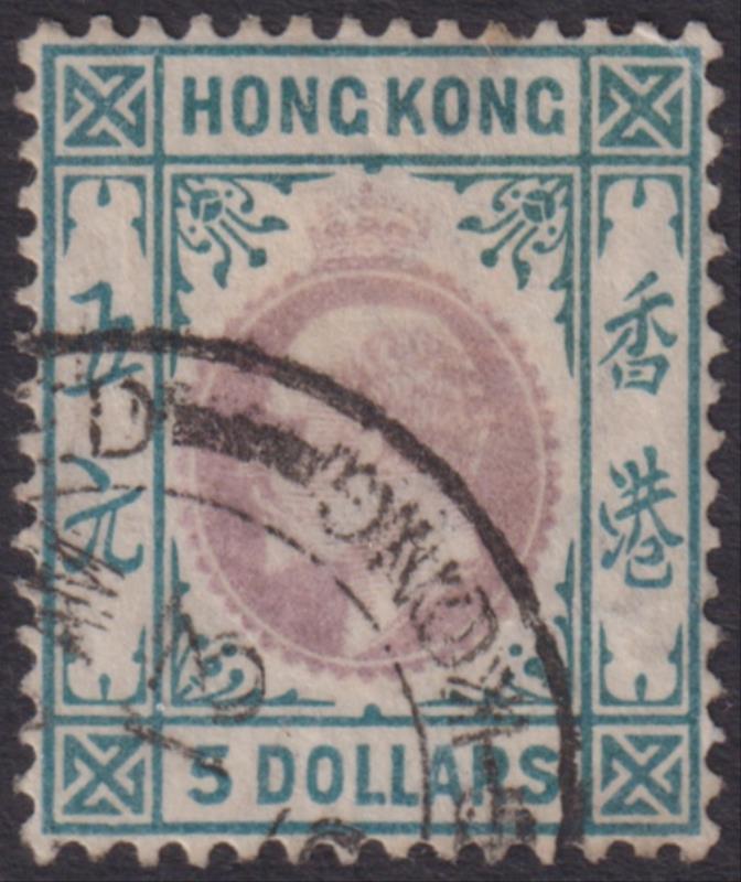 Hong Kong 1903 $5 EVII, crown CA wmk. SG 75. Cat £650. FU. (Image)