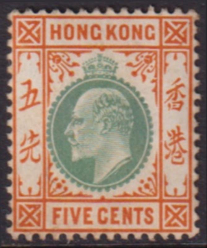 Hong Kong 1904 5c EVII dull green & brown-orange, wmk mult crown CA. SG 79. Cat £75. Mint. (Image)