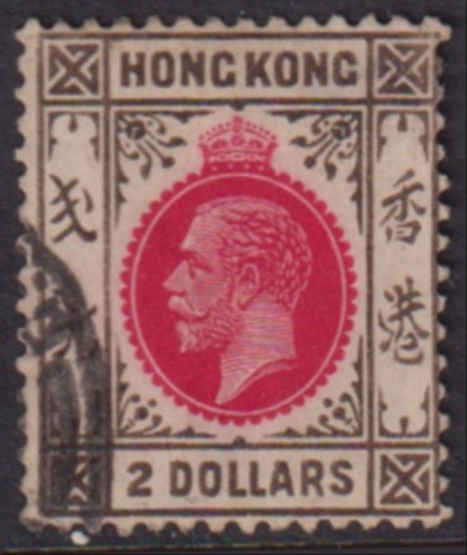 Hong Kong 1912 $2 GVI carmine-red & grey-black, mult crown CA wmk. SG 113. Cat £80. FU. (Image)
